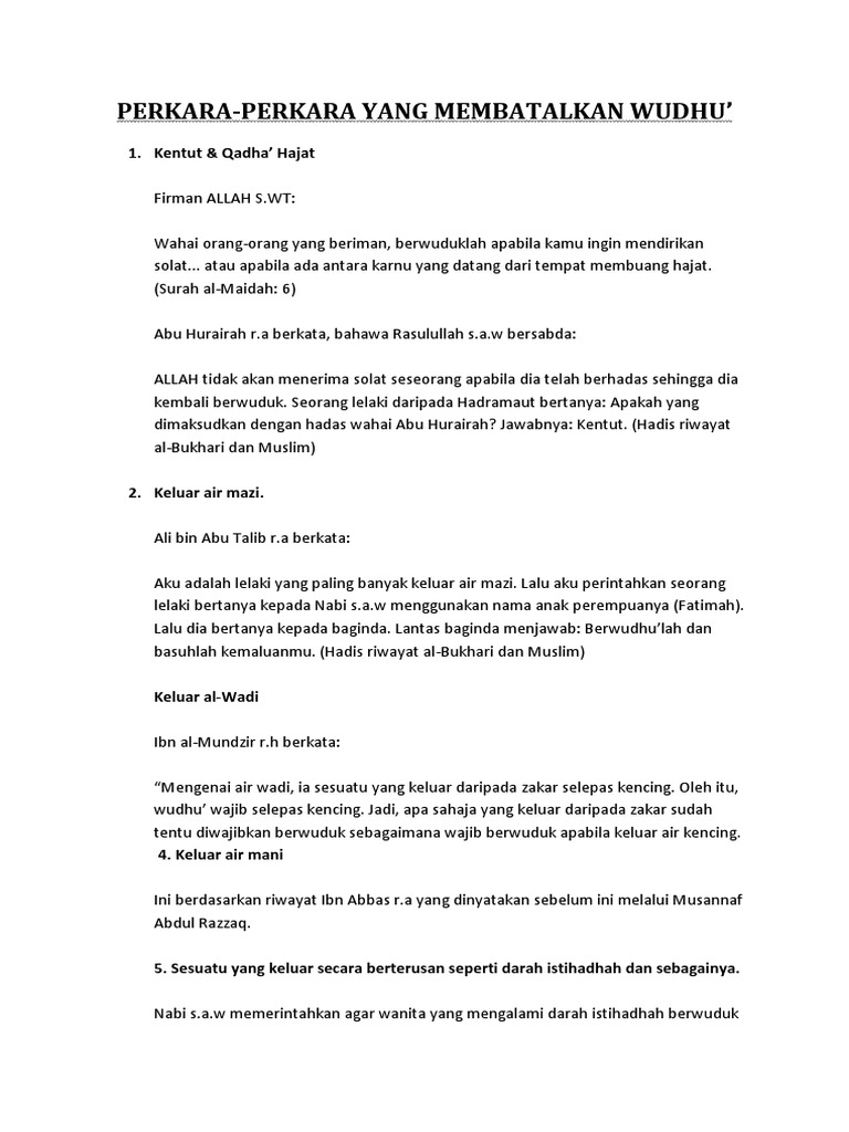 Perkara Yang Membatalkan Wuduk - View this document on scribd.