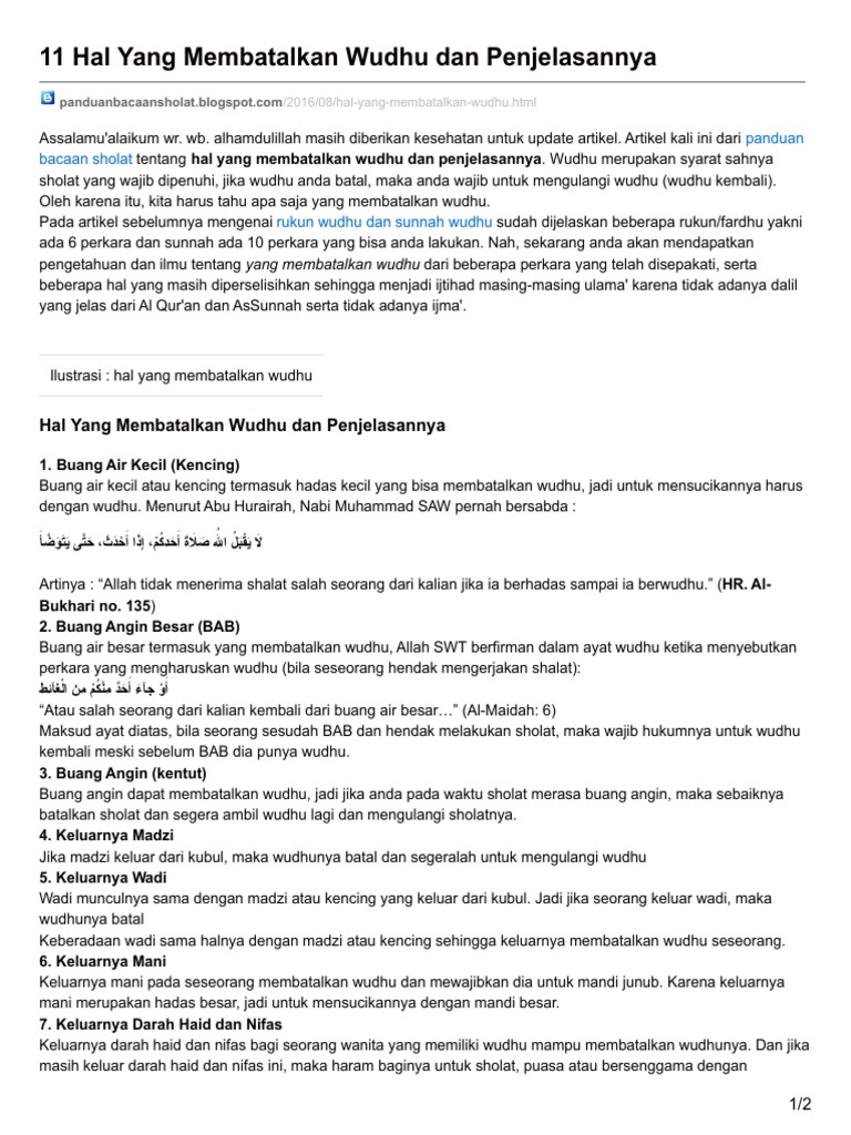 Rozaimi ramle untuk melihat artikel selengkapnya. Semoga artikel ini bermanfaat bagi penuntut ilmu dan bagi saya sendiri, serta menjadi salah satu tebusan saya di hari akhirat nanti memperoleh masuk syurga. Adapun, perkara yang membatalkan wudhu, apabila bertemu dua kemaluan (berjimak), keluar air mani, dan. Pasal menerangkan tentang perkara yang membatalkan wudhu. Hal ini adalah berdasarkan pendapat imam syafii yang terbaru atau itulah informasi tentang apa saja yang bisa membatalkan wudhu.