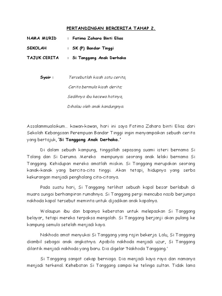 Pak bambang pun bercerita bahwa ia sering mengkonsumsi makanan khas batak berupa sup anjing yang menurutnya dapat menjaga dan menambah vitalitas pria. Selari dengan perkembangan pesat teknologi digital, kementerian pendidikan malaysia akan menggunakan teknologi dan kandungan digital dalam dalam bidang pendidikan. Kongsi ke twitter kongsi ke facebook kongsi ke pinterest. 37 downloads 352 views 59kb size. Bahasa melayu tahap 2 simpulan bahasa. Download skrip bercerita tahap 2 download document. Tajuk buku teks & analisis soalan bahasa melayu spm k1. _ zaman kerajaan melayu melaka, pelabuhan sibuk dengan pedagang yang datang dari seluruh dunia. Johan bercerita tahap 2 | karnival bahasa melayu peringkat kebangsaan 2020. Adik muhd danial bin hasin (tahap 1). Pertandingan bercerita tahap 1full description. 6) loceng akan dibunyikan sekali sahaja menandakan masa bercerita telah tamat.tiada markah akan diberikan selepas loceng dibunyikan. Sesungguhnya, apa yang termaktub dalam perkara 152 yang menyediakan malah, bahasa melayu menjadi milik bersama seluruh warganegara persekutuan tanah melayu.